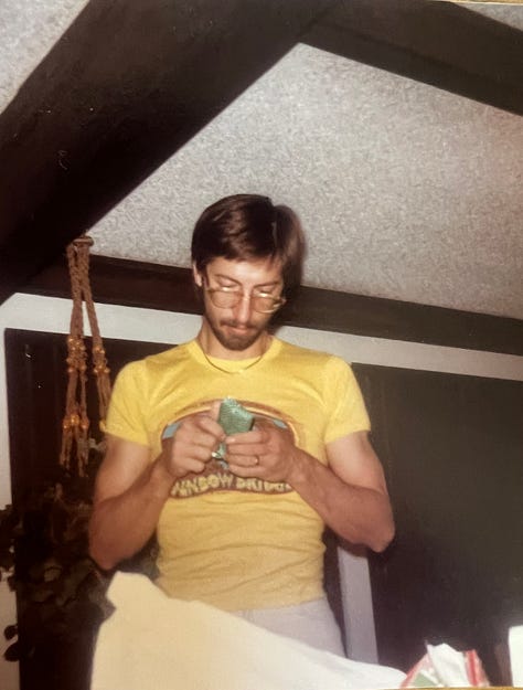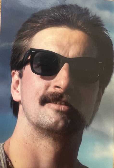 At some point in the 80s, He grew a thick mustache, shaved off his beard and cut his long, hippy-style, hair into a buzz cut. If you saw him, you would immediately be just a bit intimidated—the way you are when a motorcycle cop pulls you over.