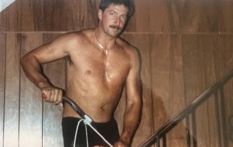 Back then my dad stood 6’4” tall. He was long and lanky. As I grew older he started to grow some muscle, which wasn’t easy for him— but he worked hard at it.